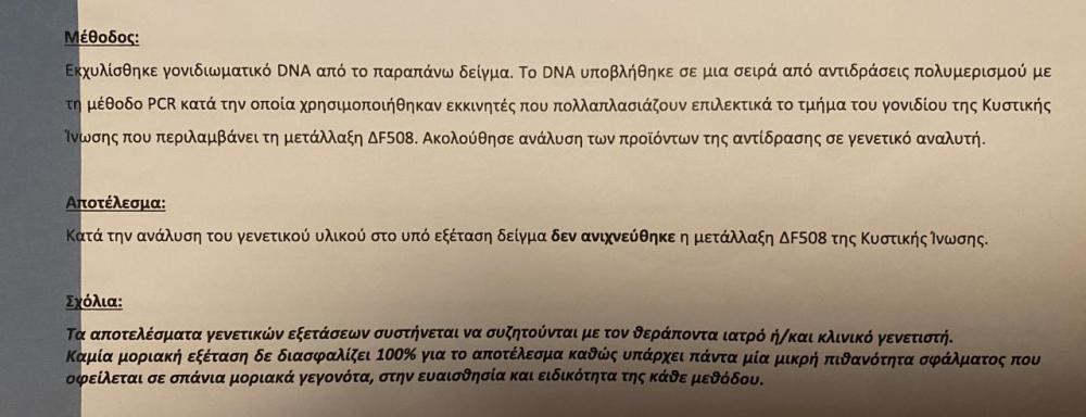 Εμένα δεν γράφει κάτι τέτοιο αλλά γράφει ότι δεν ανά βρέθηκε η μετάλλαξη αυτή.! Λες να την ξανά επαναλάβω.; -