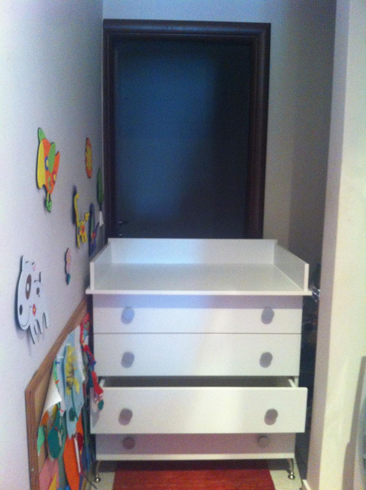 6. Διαθέτει άνετη επιφάνεια στο πάνω μέρος της όπου μπορούμε να προσαρμόσουμε αλλαξιέρα (δεν περιλαμβάνεται). Παράλληλα, τα υπερυψωμένα πλαϊνα και η πλάτη, προσφέρουν επιπλέον ασφάλεια. Τέσσερα ευρύχωρα συρτάρια για να τακτοποιήσετε πολλά από τα ρουχαλάκια του μωρού, με μηχανισμούς βαρέου τύπου που εξασφαλίζουν άνεση στον χειρισμό και αθόρυβη λειτουργία. Ιδανική όταν ο χώρος είναι περιορισμένος Διαστάσεις: 60x1.05x1.05 Τιμή: 150€