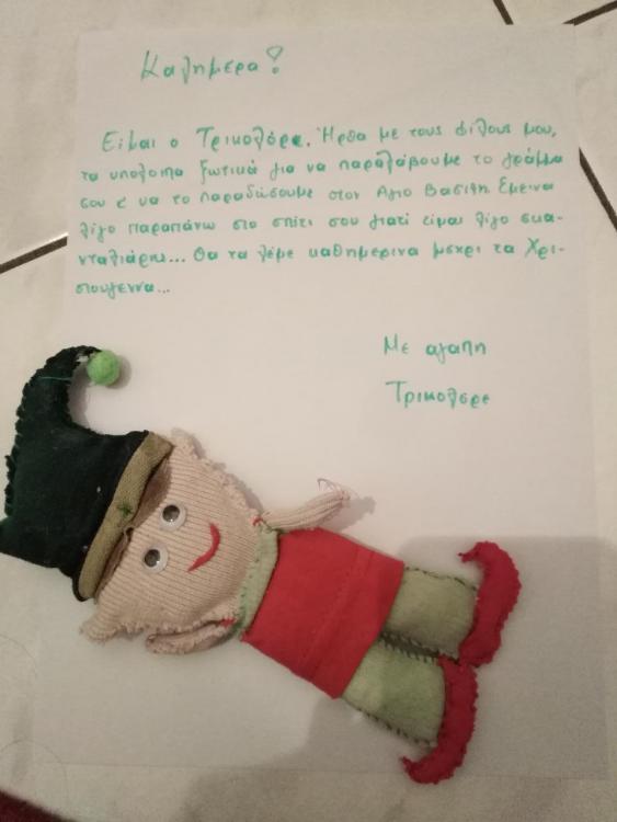 Οσον αφορα υο χριστουγεννιατικο ημερολογιο. 1 του μήνα ειχαμε μελομακαρονα να φτιαξουμε που τα καναμε σημερα. Στις 2 ειχαμε να γραψουμε γραμμα στον αγιο βασιλη, το βαλαμε στο ταχυδρομικο κουτι να έρθουν να το παρουν τα ξωτικα το σκ. Κ η ιδεα που μου γεννηθηκε χθες ειναι να φτιαξω ξωτικο ουτε κ ξερω πως θα το φτιάξω, κ καθε πρωι να ξυπνάει να βρισκει τι σκανταλια εχει κανει το ξωτικο κ να μας αφηνει σημειωμα αν καταφερω να την υλοποιήσω θα σας γραψω νεα. 3 ειχε να κανει μια χειροτεχνια με ψαλιδι κ κολλα εναν ταρανδο. Του ειχα εκτυπωσει εναν ταρανδο σε κομματια, τα εκοψε κ τα κόλλησε. 4 σημερα ειχε να φτιαξει ενα χριστουγεννιατικο banner, το οποιο δεν το ολοκληρωσαμε. Αυριο εχουμε στολίδια χαρτινα, αν θυμάμαι καλα. Επισης του εκανα ενα στολιδι κ για το σχολείο.