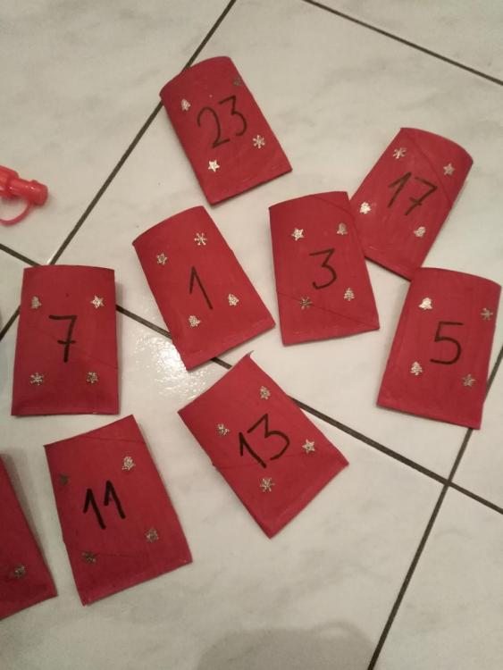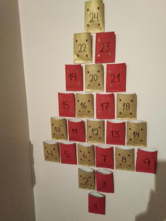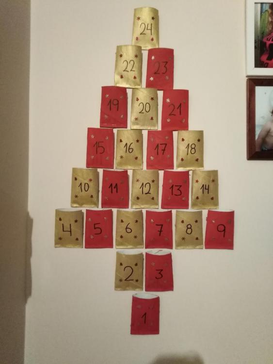 10. Θα σας βαζω καθε μερα τι κανουμε, θα προσπαθω δλδ.. Γενικά πρέπει να το ρυθμισω γιατι εχω κ την μικρη, εχουμε κ το σχολείο κ το κολυμβητήριο, οποτε ο χρονος μας περιοριζεται σε μεγαλο βαθμο. Γιαυτο έπρεπε να παω σήμερα τζαμπο να βοηθησει λίγο την κατασταση μου😂😂 Αυτο που εβαλα το ημερολόγιο ειναι χαρτιά υγειας τα οποια τα εκλεισα απο την μια πλευρά με συρραπτικο, τ βαψαμε με τεμπερες πριν κατι μέρες. Πηρα χαρτια glitter, περφορατερ με χριστουγεννιατικα σχεδια κ τα κολλησα πανω με κολλα χειροτεχνίας έγραψα τον αριθμο με μαρκαδορο.. Τα κολλησα στο τοιχο με κολλα πλαστελίνη. Εχω χαρτακια σημειωσεων κ εκει θα γραψω τι θα γινεται καθε μερα. Το χαρτακι θα μπαινει μεσα στο κουτακι.. Αυριο ειπα τι θα κανουμε θα τα φτιαξουμε μαζι εννοειται τα μελομακάρονα. Πεμπτη θα γραψουμε γραμμα στον αη βασιλη. Θα φτιαξω κ ταχυδρομικο κουτι. Καποια αλλα που θα κανει.. Χριστουγεννιατικη ζωγραφια (εκτυπωνει κ ζωγραφίζει) Χριστούγεννιατικα χαρτινα στολιδια (περσι είχαμε κανει απο πηλο) Χριστουγεννιατικες ταινιες Κυνηγι κρυμμενου θησαυρου Να χαρίσει κατι που δνε χρειάζεται κ έκπληξη θα του φτιαξω ζέστη σοκολατα με βλακειες 😂 Νια μερα θα κανουμε κουραμπιεδες Θα του εκτυπώσω πχ κομματια απο ταρανδο κ υα τα κοψει κ θα τον ενώσει. Pinterest μπορεις να παρεις ιδεες για christmas calendar. Fb δραστηριοτητες & βιβλια για παιδια.. Ομαδαρα.. Αχ καποτε υπηρχε μια υπεροχη ομαδα η μαμά χειροτεχνει αλλα την έκλεισαν οι κοπέλες που την είχαν.. Ηταν υπέροχη.. Ειχα παρει ιδεες για την βαφτιση του.