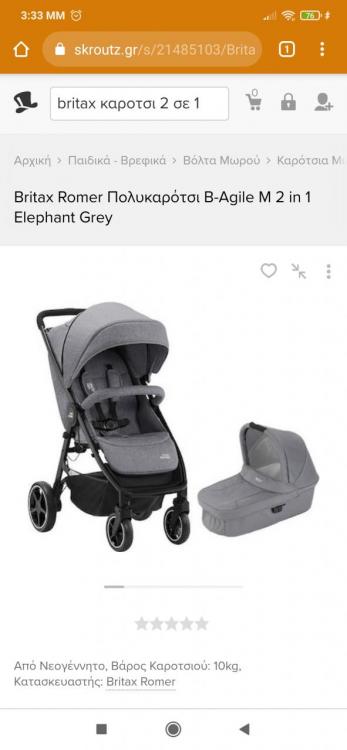 Κοριτσάκια καλησπερα.. Όπως ξέρετε κάποιες από σας είμαι στον 8ο μήνα και έχω ψωνίσει τα παντα για το μωρό.. Σήμερα όμως μου έφεραν δώρο ένα καρότσι μέσα στη κουτα του.. Και εγώ έχω αγοράσει ένα και έχω και άλλο ένα που μου εδωσαν. Οποία ενδιαφέρεται ας μου στη στηλει μνμ γιατί θα το πουλησω δεν έχω χώρο για 3 καρότσια και δεν νομίζω να μου χρειαζόνται κιόλας προτειμω μ αυτά τα χρήματα να κάνω κάτι άλλο για το μωρό. Το καρότσι που πωλειται είναι αυτό εδώ της φωτογραφίας που την κατεβασα από το google γιατί το καρότσι είναι μέσα στη κουτα του και δεν θέλω να το ανοίξω.