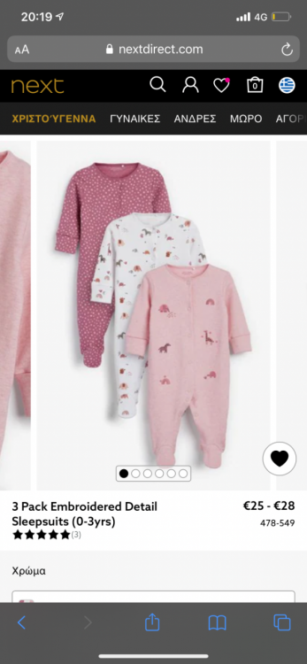 Αυτό για το φορμάκι που θα βγει από το μαιευτήριο το είχα ξεχάσει! Και μόλις είπες mayoral μου θύμισες να μπω κι εκεί γιατί δεν είχα κοιτάξει καθόλου, και βρήκα ένα τέλειοο φορμάκι για το μαιευτήριο💗💗το οποίο όμως υπήρχε μόνο σε 12-18 μηνών όλα τα άλλα ήταν εξαντλημένα, οπότε πήρα τηλ την εταιρεία μου είπε δε θα το ξαναφέρουν εκτός αν το επιστρέψει κανείς, με τα πολλά μετά από πολύ ψάξιμο στα μαγαζιά που πουλάνε αυτή τη μάρκα βρήκα ένα 1-2 μηνών δηλαδή μέχρι 60εκ, ακριβώς αυτό που ήθελα και πήγα και το πήρα σήμερα κι όλας😊😊 Οπότε έκλεισα κι από αυτό! 💗💗 Μου ήρθαν κ οι 3 πάνες αγκαλιάς που πήρα!! Σας βάζω φωτο απόλα🥰 Εγώ πάλι έχω ενθουσιαστεί με τα ρουχαλάκια!! Σας βάζω φωτο κ μία 3αδα που πήρα από next🤗 Αγάπη δε νομίζω βελουτέ για τότε..είναι ανάλογα κ τι καιρό θα έχει εκείνες τις μέρες..αν έχει πολύ κρύο θα θέλει κ κανένα βελουτέ, αλλιώς αν έχει ανέβει η θερμοκρασία κ τα βαμβακερά είναι οκ..θα της φοράς κ άλλο από μέσα ούτως ή άλλως..δε θυμάμαι πέρσι τι καιρό είχε εκείνη την εποχή…εγώ δε νομίζω να πάρω βελουτέ πάντως..κ αν τύχει κ έχει τόσο κρύο θα της βάλω κανα ουδέτερο του μικρού μου.. Μελομακάρονα με στέβια έχει ο φούρνος δίπλα μου κ είναι πολύ ωραία ευτυχώς!!😊 -