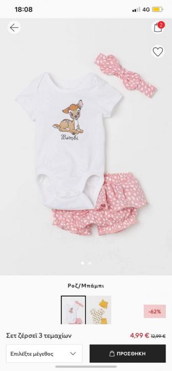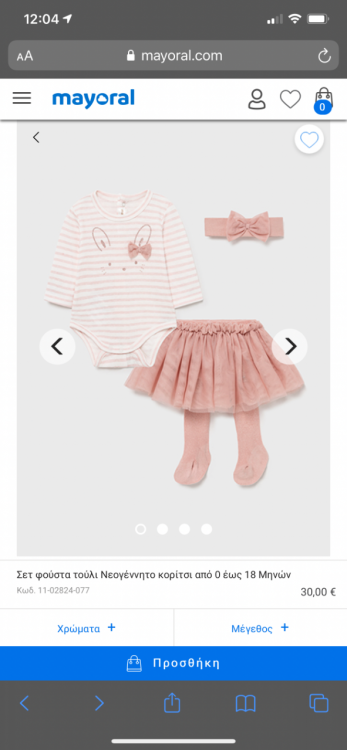 Καλημέρα Διόνη μου!! Δε νομίζω να το βρεις αυτό που πήρα, γιατί στο mayoral είχε μόνο 12-18..εκτός αν το θες για πιο μετά..εγώ το βρήκα σε ένα άλλο μαγαζί μετά από ψάξιμο για 1-2 μηνών, δηλαδή μέχρι 60εκ κ έτρεξα κ το πήρα…θα είναι γλύκα όταν βγει από το μαιευτήριο πιστεύω με αυτό..💓💓💓 Μεγεια πολύ γλυκό φορμάκι! Το κάτω είναι που σου πήρε η συνυφάδα σου ε; Σίγουρα θα της το φορέσεις πιστεύω έστω λίγο!! Το πάνω είναι που θέλεις να πάρεις για το μαιευτήριο;; Μια γλύκα και αυτό💗💗 αυτό το απαλό ροζ είναι το πιο γλυκό ροζ💞 -