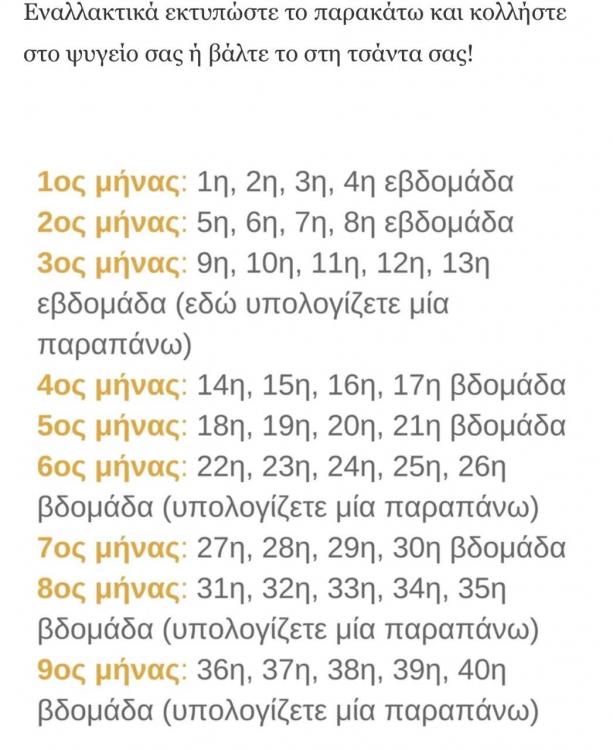 11. Χαχαχα την καταλαβαίνω τη φίλη σου!! Ένα άγχος είναι γενικά😄😆 Ναι ναι ακριβώς έχεις κλείσει τις 16εβδ κ είσαι στη 17η..Ο 4ος είναι μέχρι 17εβδ και από τη 18η μπαίνεις στον 5ο..είχα βρει κ ένα πινακάκι κάτσε να στο στείλω μήπως σε βοηθήσει γιατί κι εμένα πέρσι με μπέρδευαν αυτά😊💕