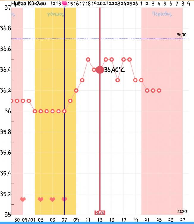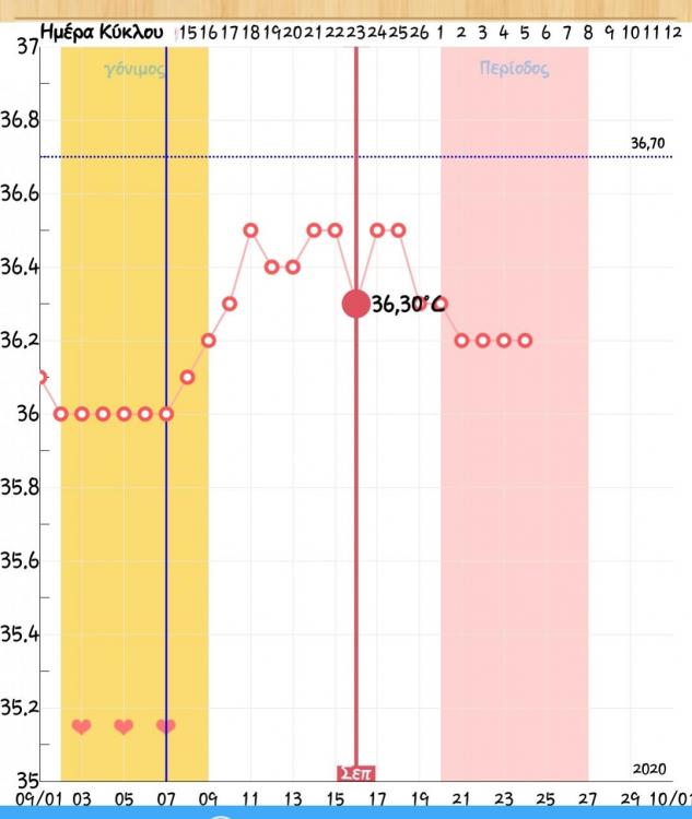 Δεν βλέπω άνοδο θερμοκρασίας που να σηματοδοτεί ωορρηξία κορίτσι μου...Μήπως την κάνεις λίγες μέρες αργότερα....; Κανεις και τεστ ωορρηξίας συγχρόνως; Τι κύκλο εχεις συνήθως; -