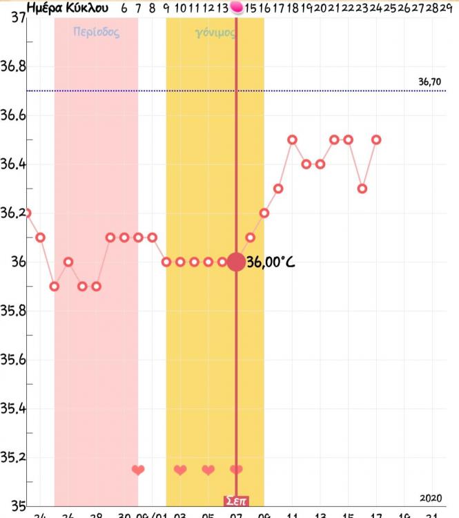 Καλημέρα....συνηθισμένη ενημέρωση θερμοκρασίας....χθες είχα 36.3, σήμερα 10 μέρες μετά από την ημέρα που θεωρώ ότι έκανα ωορρηξία έχω ξανά 36.5. Η περίοδος πλησιάζει ειμαι πολύ σίγουρη...το νιώθω!!! Σας βάζω 2 φωτο σήμερα, κατέβασα κι άλλη εφαρμογή που μου αρέσει.... -