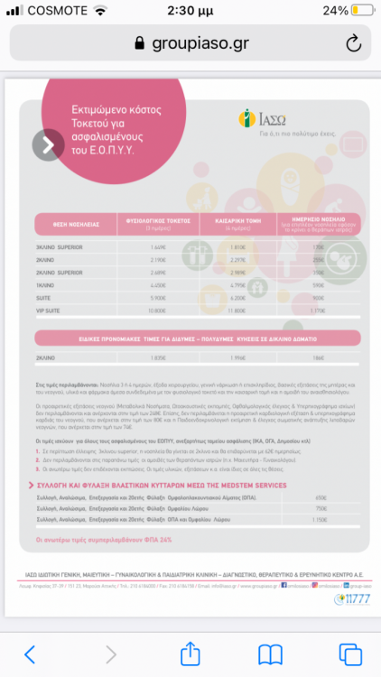 Σε αυτόν της εξωσωματικής είμαι και τον είχα ρωτήσει για χρήματα πριν δω ότι είναι δίδυμα και ήδη το πόσον ήταν μεγάλο απλά είπε είτε γεννήσω φυσιολογικά είτε με καισαρική θα πληρώσω το ίδιο .Τώρα που είναι δίδυμα πρέπει να ξαναπάρω το λογιστήριο να μου πει.