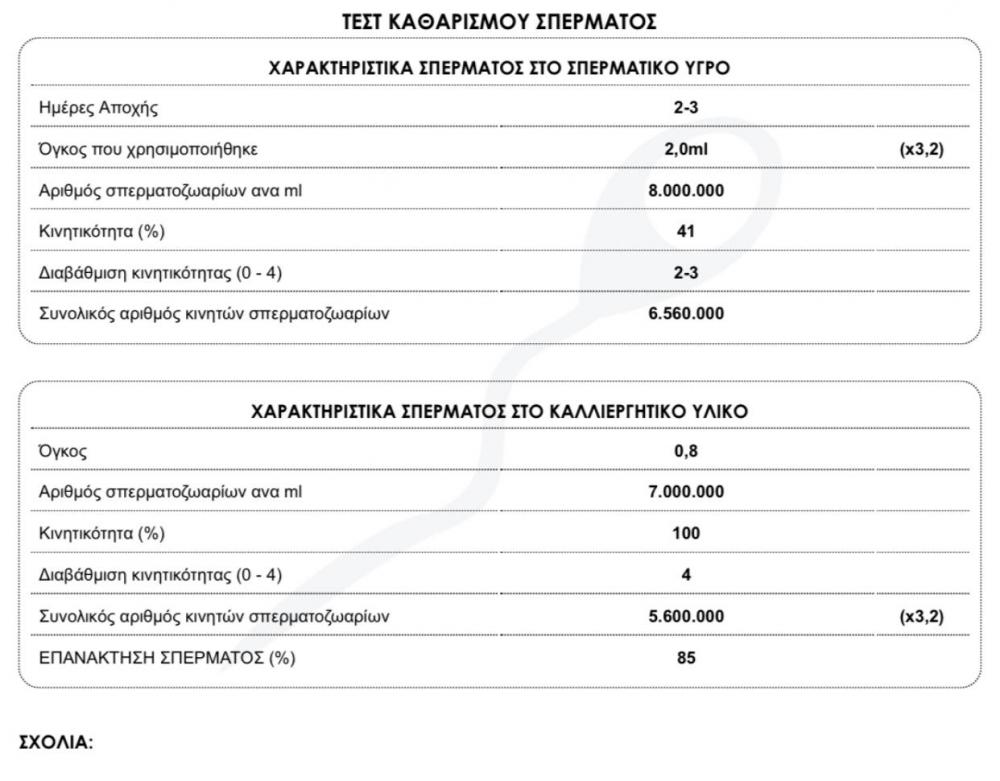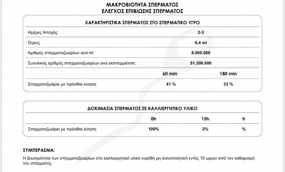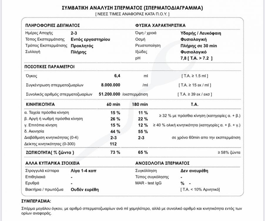 Εμεις αυριο περιμενουμε τα αποτελεσματα του σπερμοδιαγραμματος..