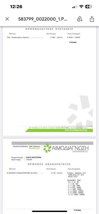Δν μ είπε γ υπέρηχο εμένα ακόμα! Η χοριακη μ ήταν 37 10ημερα ΜΤΩ! Μ είπε θα μιλήσουμε κ πάλι τη Τετάρτη🙏❤️ -