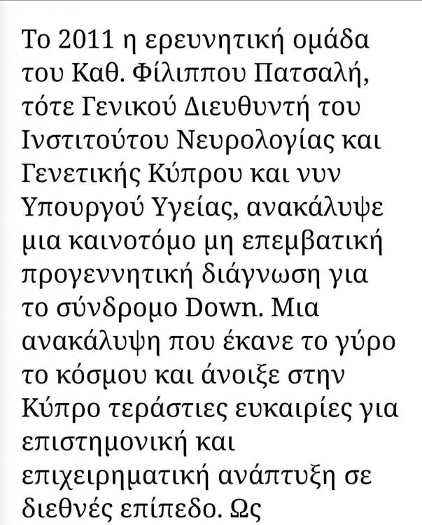 Και εγώ αν με βάλει να επιλέξω εννοείται ότι την nipt θα προτιμήσω και ας στοιχίζει..αφου το ξέρω θα βάζω από τωρα στην άκρη.. Ασχετο αλλα ο Δρ Φίλιππος Πατσαλη είναι και συγγενής μου.. όχι ότι παίζει ρόλο αλλά χαίρομαι που ένας ελληνοκυπριος είναι πίσω από αυτή την σημαντική εξέταση.. έχουμε και στην Κύπρο και Ελλάδα φοβερούς επιστήμονες
