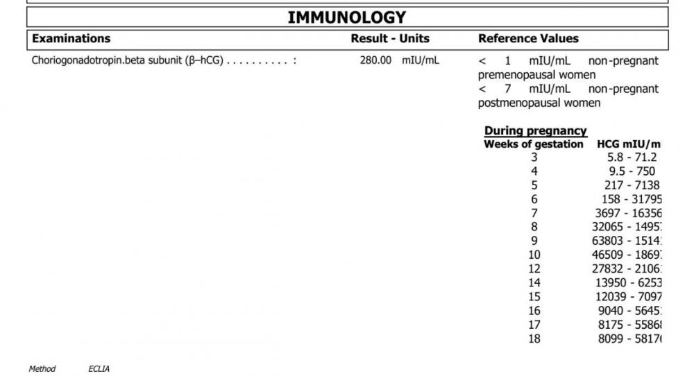 13. Εμενα η χοριακη με δείχνει 4 βδομαδων βάση των μετρήσεων του χημειου γιαθτο σε ρώτησα με βάση την χοριακη πόσο εισουν ... δίπλα από το αποτέλεσμα γραφει πχ απο 9.5-750 4η βδομάδα