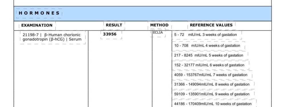 Κορίτσια δεν άντεξα εκανα μια χοριακη. Και έχω μπερδευτεί. Δείτε και εσείς λίγο τις τιμές δίπλα. Δεν θα έπρεπε σήμερα να ήμουν σχεδόν 7 βδομαδων με τέτοια χοριακη σύμφωνα με τις τιμές του μικροβιολογικού; Πώς γίνεται να έχω τέτοια χοριακη και να μην φανεί τίποτε από έμβρυο; -