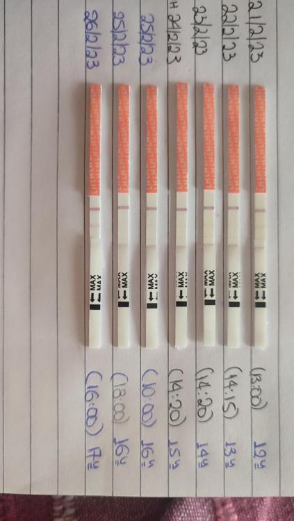 Καλησπέρα. Τα ξεκίνησα τη δωδεκατη. Είμαι ήδη στη 16η και πλέον κάνω δύο φορές τη μέρα. Αυτή τη φορά φαίνονται όλα πάρα πολύ άχνα. Πριν δύο μήνες που ξαναέκανα, υπήρχαν και κάποια πιο σκούρα αλλά φαινόταν ότι υπήρχαν σκαμπανεβάσματα και φυσικά καμία φορά μέχρι την 20η μέρα δεν ήταν αρκετά σκούρο ώστε να θεωρηθεί θετικό. Μπορεί να μην είμαι γιατρός, αλλά ξέρω ότι δεν κάνω ωορρηξία καθώς αυτός ήταν και ο λόγος υπογονιμότητας μου όταν προσπαθούσα για πρώτο παιδί. Πέτυχα ωορρηξία μόνο μετά από το drilling ωοθηκών που έκανα (λαπαροσκόπηση) κι έτσι έμεινα έγκυος. -