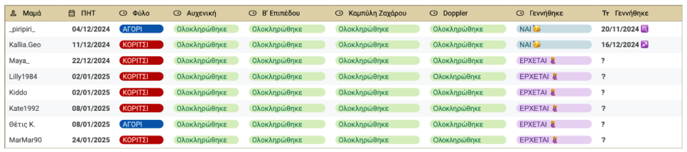 Κορίτσια, βλέποντας και το πινακάκι με τις ΠΗΤ μας, παρατηρώ ότι, αν δε γεννήσει καμία πριν τις 22, μάλλον @Maya_ θα είσαι εσύ που θα μας φέρεις το πρώτο Αιγοκεράκι 💖 Μπαίνουμε αισίως στη σφαίρα του Αιγόκερω, έχοντας στην παρέα μας έναν Σκορπιό και μία Τοξότη ! 💙❤️ @MarMar90 εάν η δική σου μπεμπούλα πάρει όλο το μήνα της, τότε φλερτάρουμε και με Υδροχ΄όο! Πολύχρωμη και πολυποίκιλη η ομάδα μας 😍✨ -