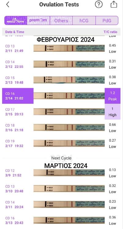 3. Καλησπέρα κορίτσια κι από μένα! Λοιπόν αυτός ο κύκλος είναι πολύ περίεργος μέχρι στιγμής 😅 16η μέρα κι ακόμα τα τεστ ωορρηξίας είναι αχνά, ενώ στους προηγούμενους κύκλους, τέτοια μέρα είτε είμαι πολύ κοντά στο πικ ή ακριβώς στο πικ (φωτό). Βεβαία ίσως παίζει ρόλο που έκανα τη σαλπιγγογραφια τη 10η μέρα του κύκλου και οι βιταμίνες μυο-ινοσιτολης που ξεκίνησα 1 μήνα πριν 🤷‍♀️ Σήμερα έχω κάτι πονάκια μια στην αριστερή ωοθήκη, μια στην δεξιά... Ίσως αύριο 🤞