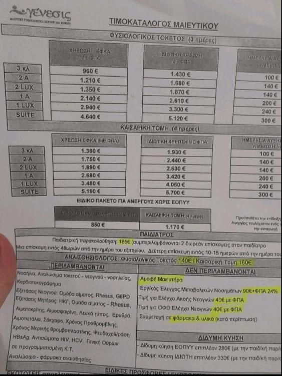 4. Καλησπέρα κορίτσια.. αυτές είναι οι καινούριες τιμές στα δωμάτια του Γένεσις Θεσσαλονίκης... Θα ήθελα να ρωτήσω αν γέννησε κάποια πρόσφατα εκεί και πόσο της βγήκε όλο το πακέτο μαζί και με τα φάρμακα ή δεν ξέρω αν χρεώνεται η επισκληριδιος...