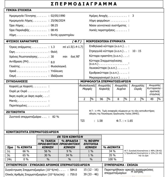 Αύριο μέχρι το μεσημέρι θα τα έχουμε τα αποτελέσματα από το σπερμοδιαγραμμα, δεν κάναμε καλλιέργεια, θέλω να πιστεύω και γω πως καλά θα είναι τα αποτελέσματα! @annie! @anna_30 κορίτσια μακάρι να μας στείλετε 2 ροζ γραμμούλες 🫶 όπως επίσης και η @Mpourmpoulo μας 🤞🤞🤞🤞
