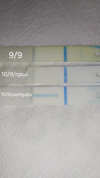 9. Καλημέρα κορίτσι μου. Έκανα το πρωί τεστ και δεν είδα ξεκάθαρη γραμμή όπως θα έπρεπε. Οπότε λογικά σήμερα θα πρέπει να μου έρθουν 😔