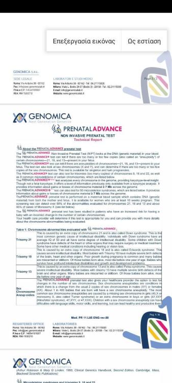 Καλημέρα! Εγώ έκανα ένα πλήρες πακέτο πέρσι θα το επισυναψω με τις κλασικές τρισωμιες και αρκετά σύνδρομα και είχα πληρώσει παραπάνω, νομίζω 550 με μια επιφύλαξη. Τι εννοείς χωρίς απόδειξη;; Μου φαίνεται παράξενο καθώς δεν ελέγχουν το δείγμα εδώ, το στέλνουν στο εξωτερικό και όλες οι διαδικασίες είναι εξαιρετικά προτυποποιημενες, δεν υπάρχει χωρος για μαύρα... Αν τα έδωσες στο γιατρό σου για να τα δώσει στο εργαστήριο τότε ίσως εκείνος να έχει κάνει συμφωνία για έκπτωση και να κρατάει τη διαφορά; Πάντως ρωτα για την απόδειξη εκείνον η το εργαστήριο γιατί μου φαίνεται αδύνατο να μη δίνουν απόδειξη για αυτήν την εξέταση, μπορεί να έγινε εκ παραδρομής. Είναι πολλά τα λεφτά συμφωνώ αλλά εγώ χαλάρωσα και απόλαυσα την εγκυμοσύνη μου μετά. Και στο δεύτερο παιδί μου θα κάνω, δεν το μετάνιωσα. Όλα να σου πάνε καλά! -
