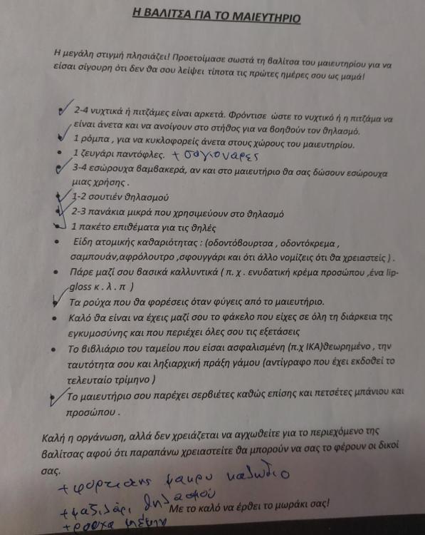Έχει καταργηθεί! Πιστεύω έτσι έχει μείνει στη λίστα.. ρώτησα και μου είπαν τα έγγραφα θα μου τα πούνε κ τελευταία στιγμή..αν και τα διάβασα.. ταυτότητες, ληξιαρχική πράξη γάμου, iban μητερας,ΑΜΚΑ.. Μαζί δε τα λέγαμε? Και εγώ θέλω να κάνω roomin αλλά στο επισκέπτηριο να το δίνω.. δεν ξέρω αν γίνεται αλλα θελω..χαχαχαχχα -