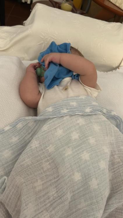 Να πως καταφερα να τον κοιμισω η δολια μανα και μετα το βουτηξε κιολας το πανι και καθομαι απο πανω μην φραξει τη μυτη του. -